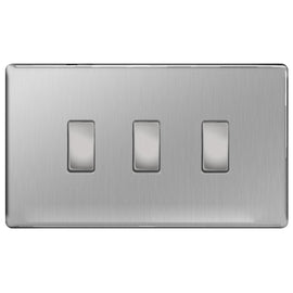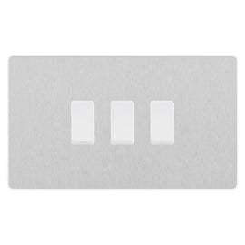 BG Evolve Brushed Steel Custom Appliance Grid Switch 3 Gang Screwless