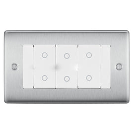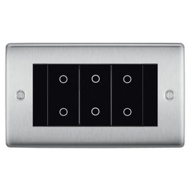 BG Evolve Brushed Steel Custom Appliance Grid Switch 6 Gang Screwless