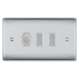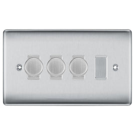 BG Brushed Steel 3 Gang Switch 1x Trailing Edge LED Dimmer 2x 2 Way Custom Grid
