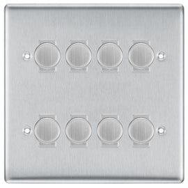 BG Brushed Steel Satin Chrome 8 Gang 2 Way Trailing Edge Dimmer LED Custom Grid