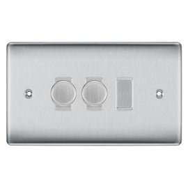 BG Nexus Brushed Steel Double Master Touch Dimmer Switch White Inserts NBSTDM2W