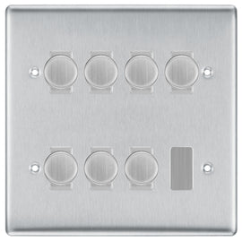BG Evolve Brushed Steel 8 Gang Trailing Edge LED Dimmer Custom Grid Switch