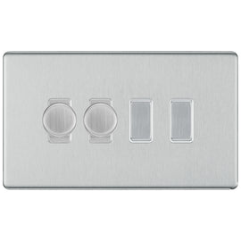 BG Brushed Steel Screwless 4 Gang Switch 2x Trailing Edge LED Dimmer 2x 2 Way