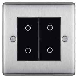 BG Nexus Brushed Steel Double Secondary Touch Dimmer Switch Black Inserts NBSTDS2B