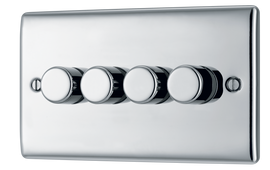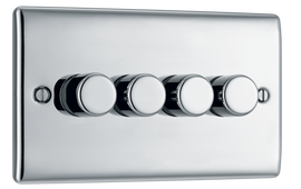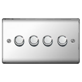 Nexus Flatplate Screwless Polished Chrome 4 Gang 200W 2 Way Trailing-Edge Push Dimmer Switch