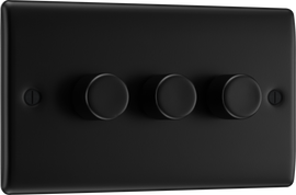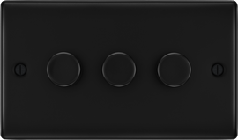 BG NFB83 Nexus Metal Matt Black 3 Gang 200W 2 Way Push On-Off Intelligent LED Dimmer Switch