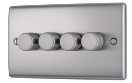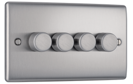 Nexus Metal Brushed Steel Quad 200W 2 Way Trailing Edge Push Type Dimmer Switch
