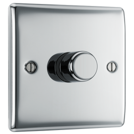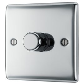 Nexus Flatplate Screwless Polished Chrome 1 Gang 200W 2 Way Trailing-Edge Push Dimmer Switch