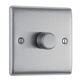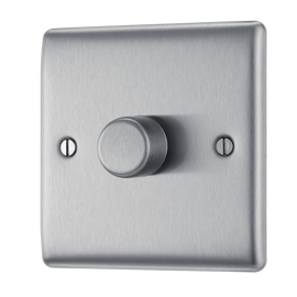 Nexus Metal Brushed Steel Single 200W 2 Way Trailing Edge Push Type Dimmer Switch