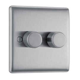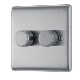 Nexus Metal Brushed Steel Double 200W 2 Way Trailing Edge Push Type Dimmer Switch