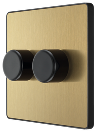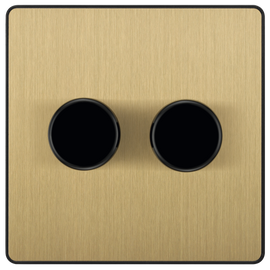 Satin Brass Evolve 2 Gang 200W Intelligent Trailing Edge Dimmer Switch - Black Insert