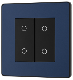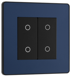 Matt Blue Evolve 2 Gang 200W Trailing Edge Secondary Touch Dimmer - Black Insert