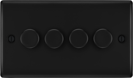 BG NFB84 Nexus Metal Matt Black 4 Gang 200W 2 Way Push On-Off Intelligent LED Dimmer Switch