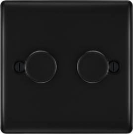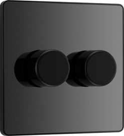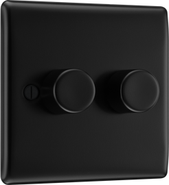 BG NFB82 Nexus Metal Matt Black 2 Gang 200W 2 Way Push On-Off Intelligent LED Dimmer Switch