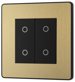 Satin Brass Evolve 2 Gang 200W Trailing Edge Secondary Touch Dimmer - Black Insert