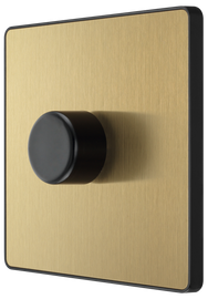 Satin Brass Evolve 1 Gang 200W Intelligent Trailing Edge Dimmer Switch - Black Insert