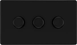 BG Flatplate Screwless Matt Black 3G Dimmer Switch FFB83