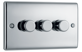 Nexus Flatplate Screwless Polished Chrome 3 Gang 200W 2 Way Trailing-Edge Push Dimmer Switch
