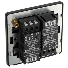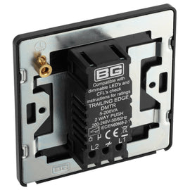 BG PCDBS81W Brushed Steel Evolve 1 Gang 200W Intelligent Trailing Edge Dimmer Switch - White Insert