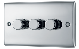 Nexus Metal Polished Chrome Triple 200W 2 Way Trailing Edge Push Type Dimmer Switch