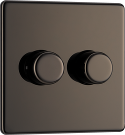 Nexus Flatplate Screwless Black Nickel 2 Gang 200W 2 Way Trailing-Edge Push Dimmer Switch