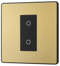 Satin Brass Evolve 1 Gang 200W Trailing Edge Secondary Touch Dimmer - Black Insert