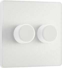 BG PCDBS82W Brushed Steel Evolve 2 Gang 200W Intelligent Trailing Edge Dimmer Switch - White Insert