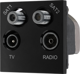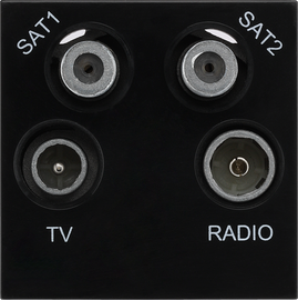 Black 2 Module 1x IEC TV 1x IEC Female Radio 2x Satellite Euro Module Screened Outlet