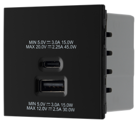 BG EMUSBAC45B Euro Module 2 Port A & C 45 USB Charging Module - Black