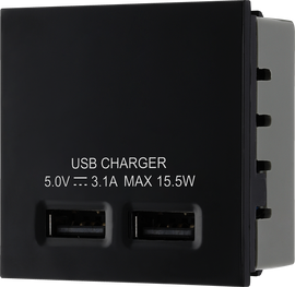 Black 2x 3.1A USB-A 2 Module Euro Module USB Charger