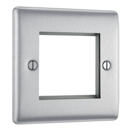 2 Module Euro Module Front Plate - Brushed Steel About Product: Square plate 2 modules - 50 x 50mm Finish: Brushed Steel The BG Electrical Euro Module NPCEMS2 is a Nexus Metal square front plate for 2 Euro module, in po...