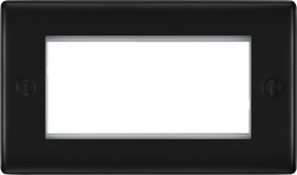 BG Nexus Matt Black Double 4 Gang Euro Module Front Plate FFBEMR4 About Product: Euro Module front plate For full customisation of outlets Aperture size 100mm wide x 50mm high Requires back box Screwless front plate cli...
