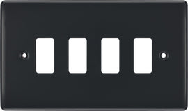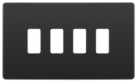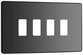 BG RFFB4 Screwless Matt Black Steel 4 Gang Front Cover Plate The BG Grid modular range allows you to build your own module configuration with a variety of combinations and finishes. This matt black finish front plate has a scr...
