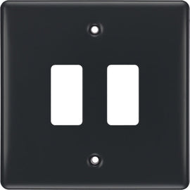 BG RFFB2 Screwless Matt Black Steel 2 Gang Front Cover Plate The BG Grid modular range allows you to build your own module configuration with a variety of combinations and finishes. This matt black finish front plate has a scr...