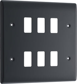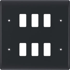 BG RFFB6 Screwless Matt Black Steel 6 Gang Front Cover Plate The BG Grid modular range allows you to build your own module configuration with a variety of combinations and finishes. This matt black finish front plate has a scr...