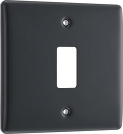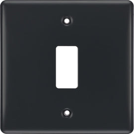 BG RFFB1 Screwless Matt Black Steel 1 Gang Front Cover Plate The BG Grid modular range allows you to build your own module configuration with a variety of combinations and finishes. This matt black finish front plate has a scr...