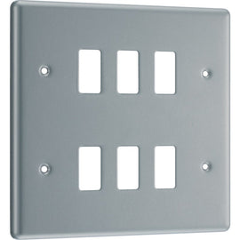 Screwless Front Plate for 6 Modules - Brushed Steel About Product: 6 Gang front plate Brushed Steel finish Designed to match the Nexus Brushed Steel Screwless Flate Plate range No visible plastic around rockers Clip on/...