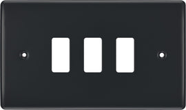 BG RFFB3 Screwless Matt Black Steel 3 Gang Front Cover Plate The BG Grid modular range allows you to build your own module configuration with a variety of combinations and finishes. This matt black finish front plate has a scr...