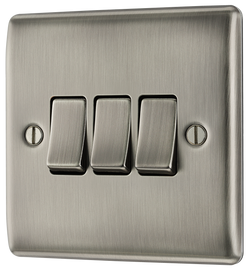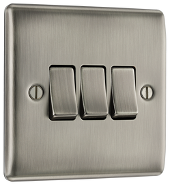 Nexus Metal Black Nickel Triple 10A 10AX 2 Way Plate Switch