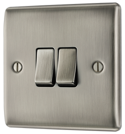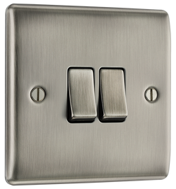 Nexus Metal Black Nickel Double 10A 10AX 2 Way Plate Switch