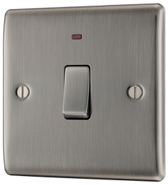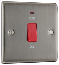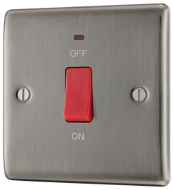 Nexus Metal Black Nickel 45A Double Pole Neon Cooker Switch