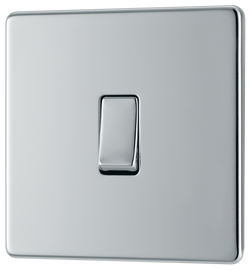 Single Light Switch (1 Gang, 2 Way) Polished Chrome - 10A About Product: No visible plastic around switches Secure Screwless front Easy "clip on/off" plate Minimum back box depth: 16mm Sleek, flat profile Angled in-lin...