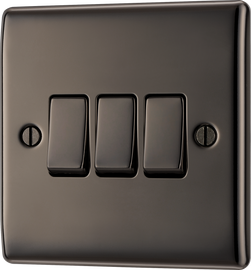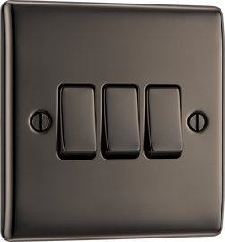 Nexus Metal Black Nickel Triple 10A 10AX 2 Way Plate Switch About Product: Top quality Black Nickel finish - lightly lacquered to prevent finger marks Matching Black Nickel rocker switches No visible plastic around switch...