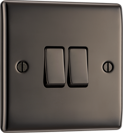 Nexus Metal Black Nickel Double 10A 10AX 2 Way Plate Switch About Product: Top quality Black Nickel finish - lightly lacquered to prevent finger marks Matching Black Nickel rocker switches No visible plastic around switch...
