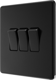 BG Nexus Flatplate Screwless Matt Black Triple Light Switch FFB43 20 Amp About Product: 20A 16AX Rated Easy to install, supplied with fixing screws and installation instructions 2 way switching allows for a second switch ...
