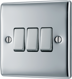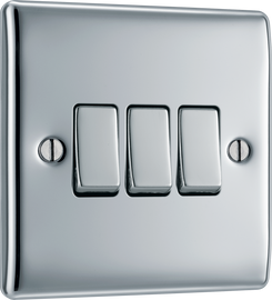 Nexus Metal Polished Chrome Triple 10A 10AX 2 Way Plate Switch About Product: Top quality Polished Chrome finish - lightly lacquered to prevent finger marks Matching Polished Chrome rocker switches No visible plastic arou...