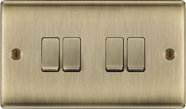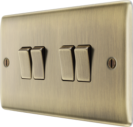 BG Nexus Metal Antique Brass Quad Light Switch NAB44 20 Amp The versatile Antique Brass range from BG Nexus are popular options for both the vintage and contemporary setting. The aged effect of the plate adds a warmth unachiev...