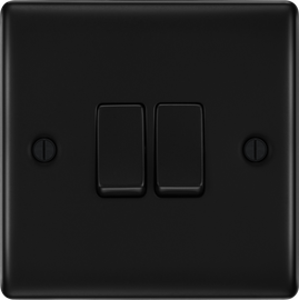 Nexus Metal Matt Black Double 10A 10AX 2 Way Plate Switch