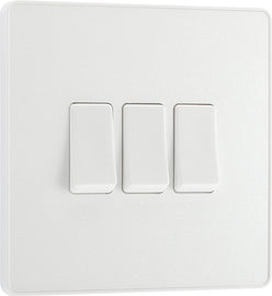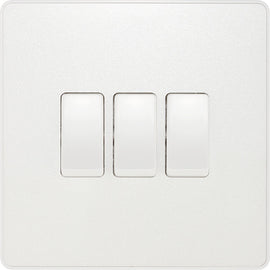 Pearlescent White Evolve 3 Gang 20A 16AX 2 Way Light Switch - White Insert About Product: 20A 16AX Rated Easy to install, supplied with fixing screws and installation instructions 2 way switching allows for a second switc...