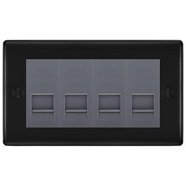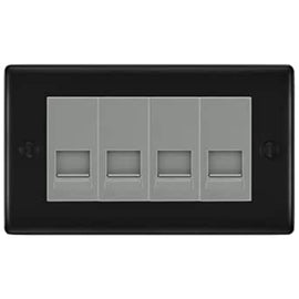 BG Nexus Matt Black 4 Gang RJ11 Telephone Socket Euro Module - Grey Insert